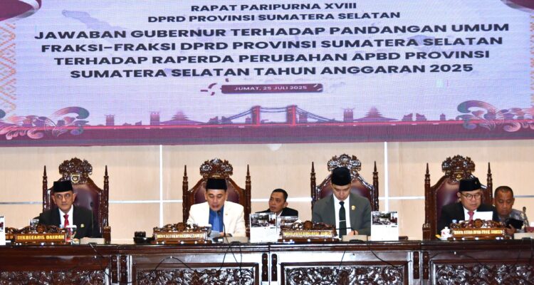 Palembang, 6/8/2025 Rapat Paripurna XVIII DPRD Provinsi Sumatera Selatan yang digelar pada