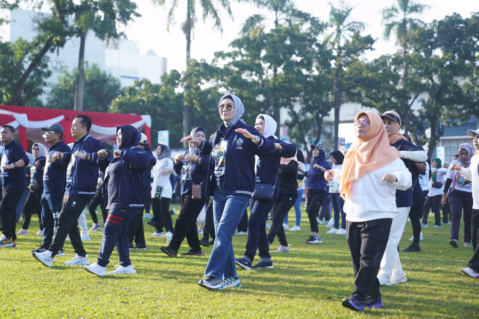Sejak pagi hari, suasana di Halaman Kantor Gubernur Sumatera Selatan sudah dipenuhi oleh ribuan peserta yang antusias mengikuti kegiatan jalan santai dan senam bersama. Peserta terdiri dari pegawai negeri sipil, anggota TNI dan Polri, pelajar, serta masyarakat umum. Semua terlihat semangat dan penuh kegembiraan dalam mengikuti rangkaian acara yang digelar untuk merayakan hari jadi provinsi tercinta.